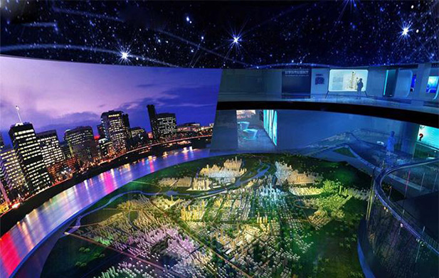 城市規(guī)劃數(shù)字沙盤制作是由大型液晶投影屏和觸摸顯示屏一體機用于以聲、光、電等多種形式顯示一個城市未來規(guī)劃。更重要的是,城市的招商引資活動離不開規(guī)劃大廳的支持。城市規(guī)劃大廳將研究結(jié)果制作成數(shù)字沙盤,并借助數(shù)字沙盤的視覺圖像特征顯示研究結(jié)果。