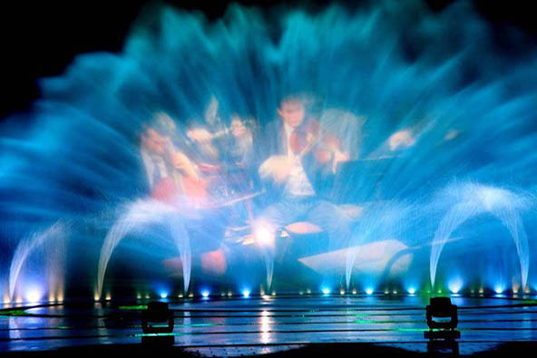 霧幕投影是一種全新的空氣成像設(shè)備。該設(shè)備利用海市蜃樓的成像原理借助空氣中存在的微粒將光影圖像呈現(xiàn)。使用一層很薄的水霧墻代替?zhèn)鹘y(tǒng)的投影幕,讓參觀者可以在該屏幕影像中隨意穿梭,達到真人可進入視頻畫面的虛幻效果。在迷茫的霧屏上,放映如幻似真的神話故事。將帶給觀眾美妙絕倫的視聽體驗。