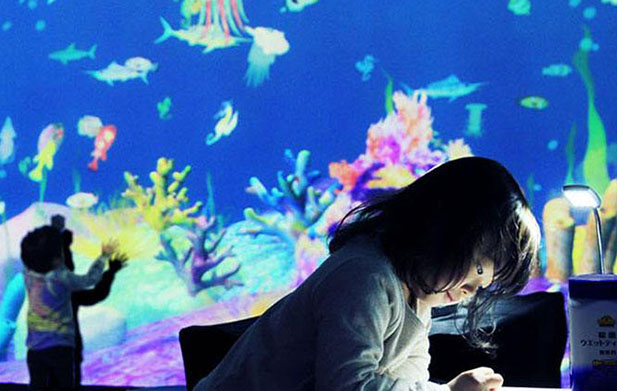 互動涂鴉軟件又稱馬良畫畫,畫畫水族館等,使用AR技術,使用實時視頻運動捕捉技術,圖像識別,壓力傳感器和其他交互技術,投影虛擬現(xiàn)實交互界面,使用色彩科學,圖像處理,人工智能等技術將現(xiàn)場涂鴉繪畫和互動展示結合在一起,吸引玩家參與創(chuàng)作,積極調(diào)動觀眾的興趣,將參與者帶入一個結合虛擬世界和真實世界的交互式神奇世界。