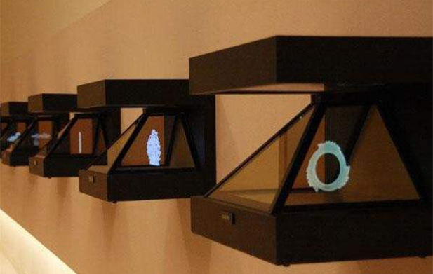 70度全息成像系統(tǒng)是當今流行的展覽設備。它結合了實體模型,利用鍍膜玻璃的折射和反射原理,將虛像投射到成像空間。通過三個微調表面的投影和融合,形成一個真實的圖像內容,給人一種真實的“物體在其中”的感覺。